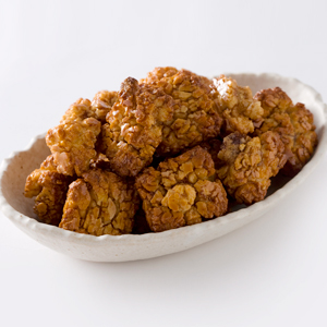 一口サイズながらも食べ応えのある、しみ食感の揚げおかき。