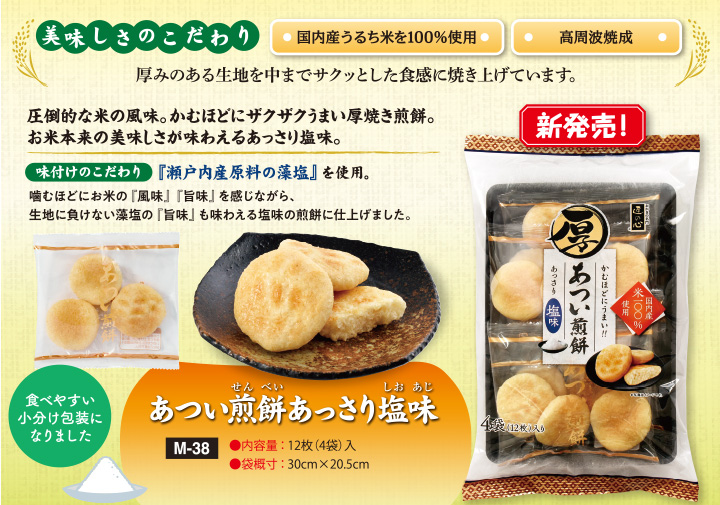リニューアル新発売!あつい煎餅あっさり塩味