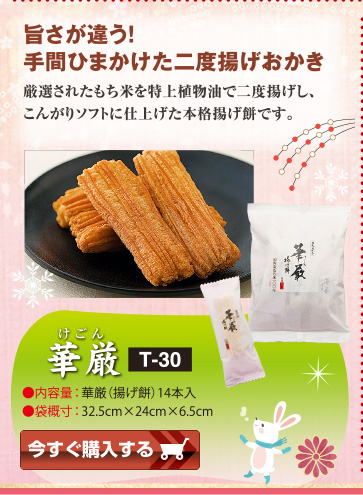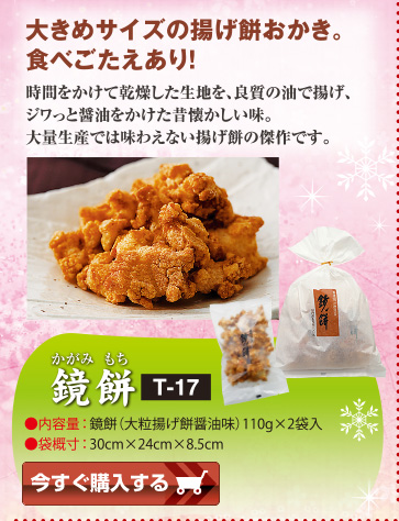 揚げもちのサックリ感を、じわっと醤油で仕上げたおかき
