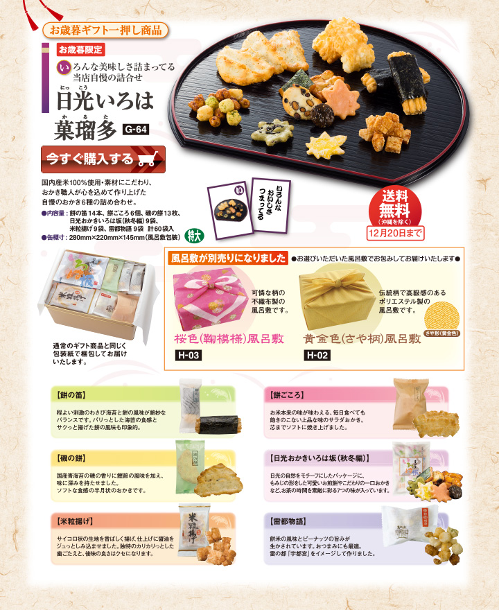 日光おかき通販トップ > 年中行事 > お歳暮限定ギフト(送料無料商品)