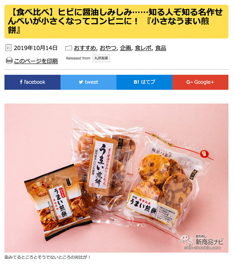 2019年10月14日「おためし新商品ナビ」に ローソン様先行の丸彦製菓「小さなうまい煎餅」が紹介されました。 http://www.shin-shouhin.com/2019/10/14/maruhikoseika-umaisenbei/ |