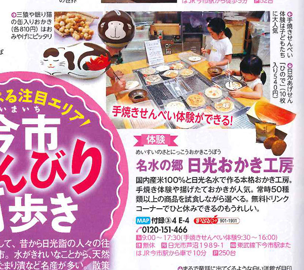 「体験」をコンセプトにしたガイドブックに日光おかき工房の手焼きせんべい体験コーナーが紹介されました。 |